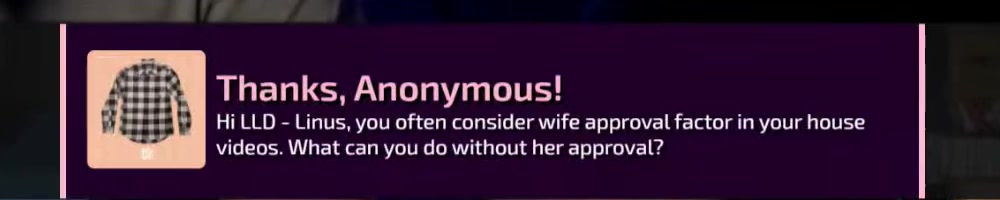 Hi LLD - Linus, you often consider wife approval factor in your house