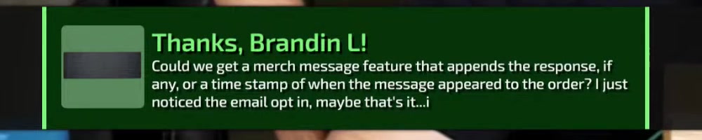 Could we get a merch message feature that appends the response, if
