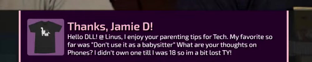 Hello DLL! @ Linus, I enjoy your parenting tips for Tech. My favorite so
