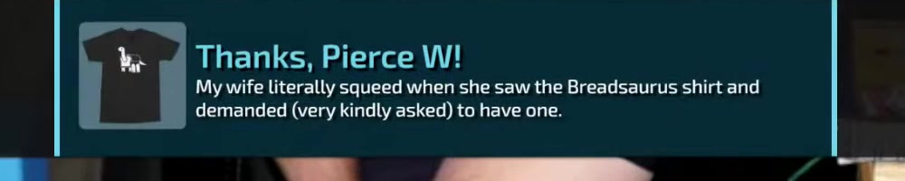 My wife literally squeed when she saw the Breadsaurus shirt and