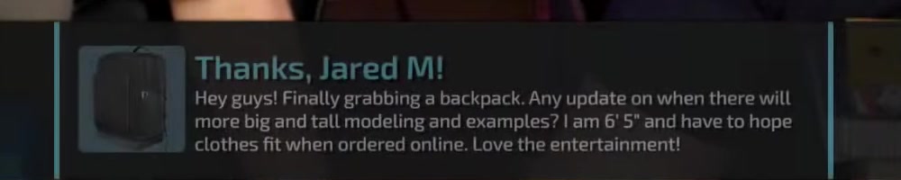 Hey WAN.DLL Any news on the backpack zippers? | Timestamp |  |
