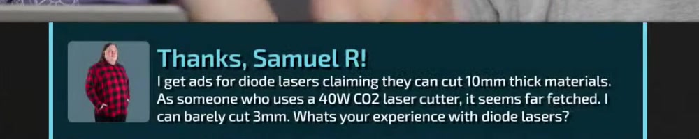 can barely cut 3mm. Whats your experience with diode lasers? | Timestamp |  |
