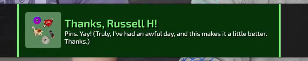 | Samuel R | message | Thanks, Samuel R!