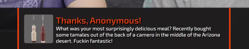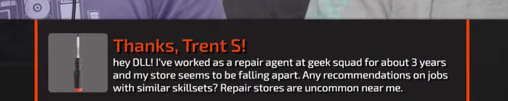 | Tyler K | message | Thanks, Tyler K!