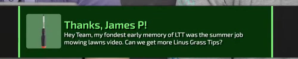 mowing lawns video. Can we get more Linus Grass Tips? | Timestamp |  |