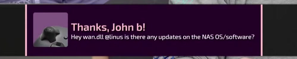 Hey wan.dll @linus is there any updates on the NAS OS/software? | Timestamp |  |