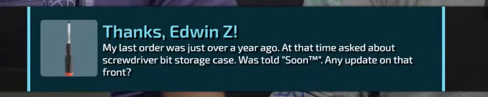 screwdriver bit storage case. Was told "SoonTM". Any update on that