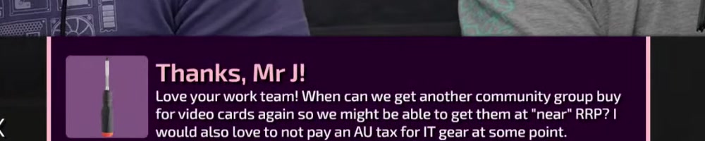 would also love to not pay an AU tax for IT gear at some point. | Timestamp |  |