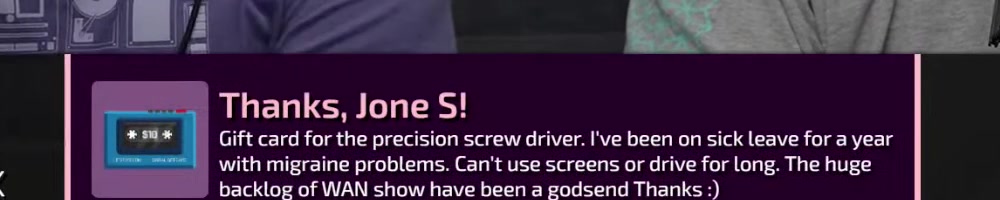 backlog of WAN show have been a godsend Thanks :) | Timestamp |  |