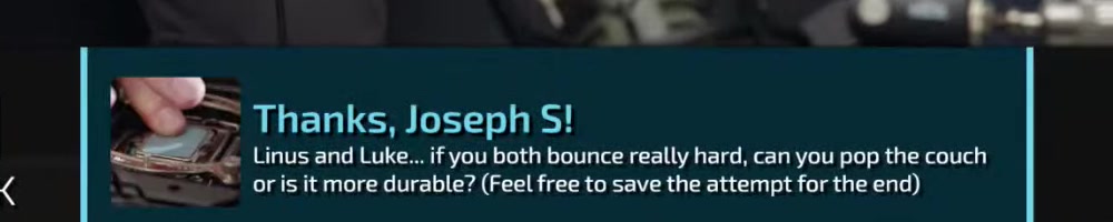 Linus and Luke... if you both bounce really hard, can you pop the couch