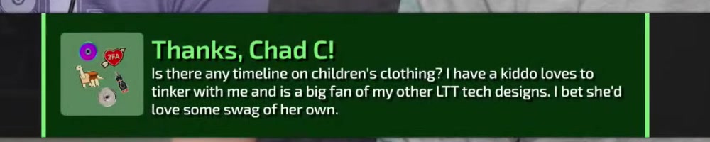 Sounds like a cool idea. Let LTT Store support. | Timestamp |  |