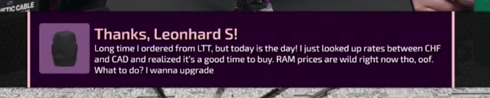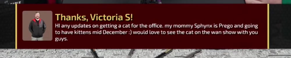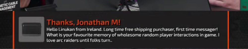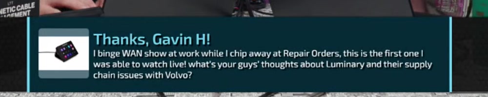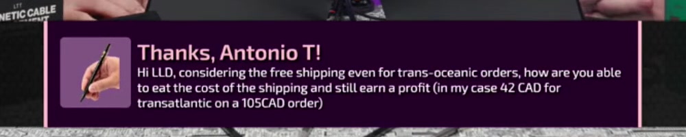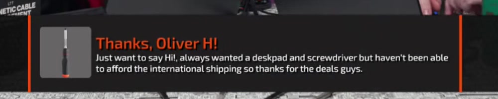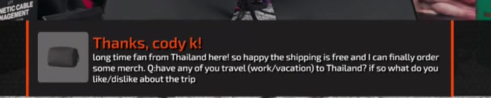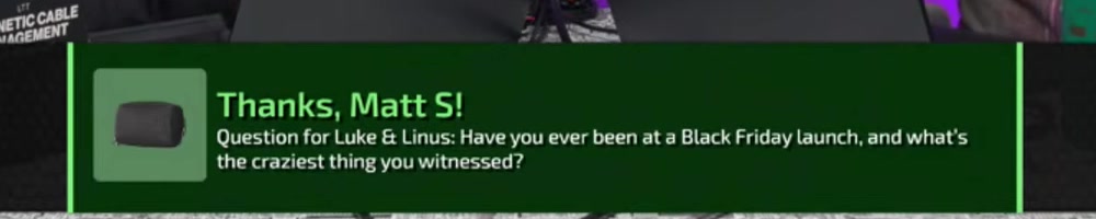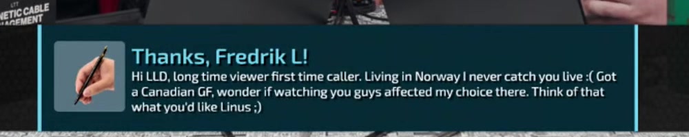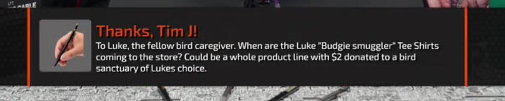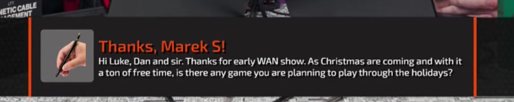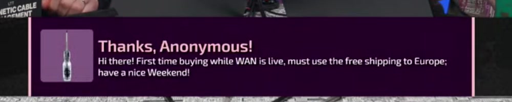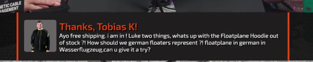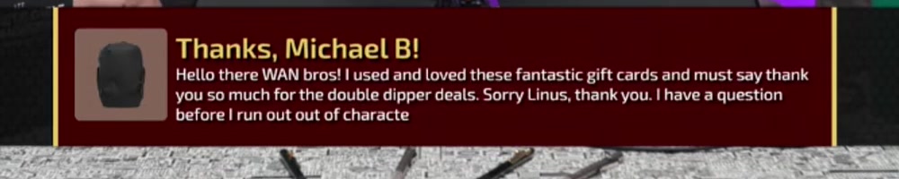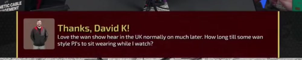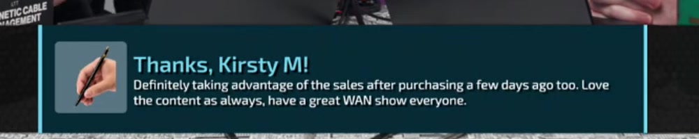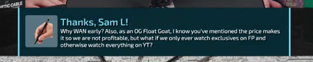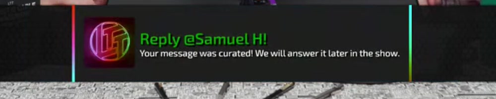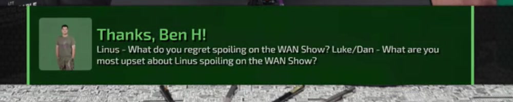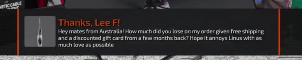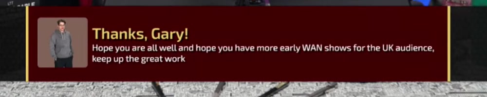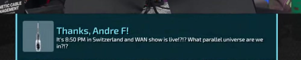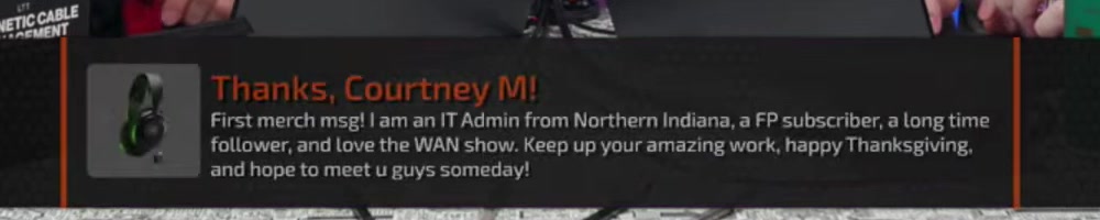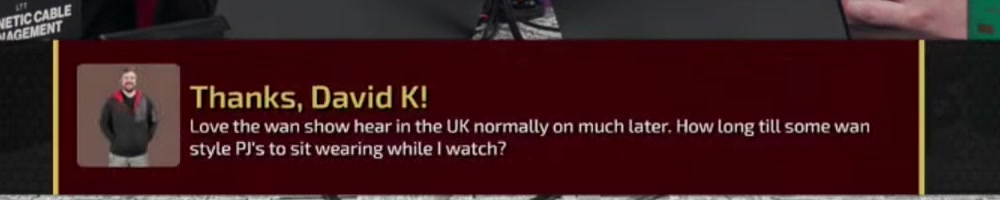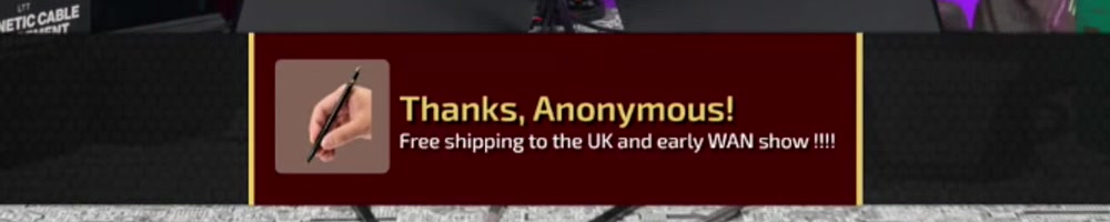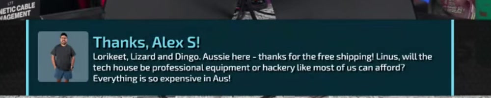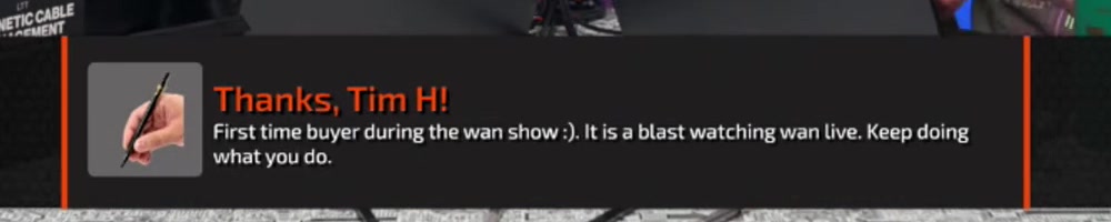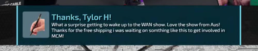 Tylor H message Thanks, Tylor H! What a surprise getting to wake up to the WAN show. Love the show from Aus! Thanks for the free shipping i was waiting on somthing like this to get involved in MCM! Timestamp