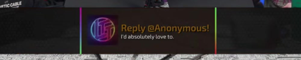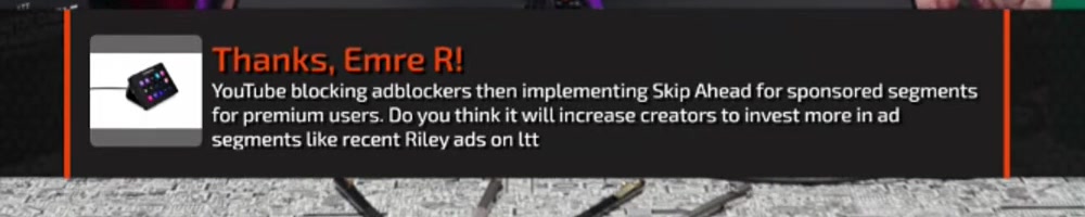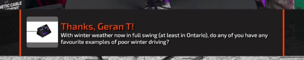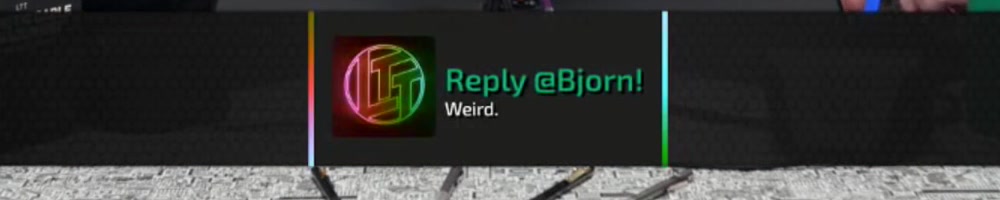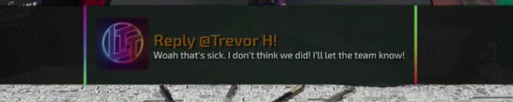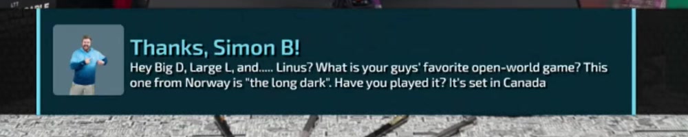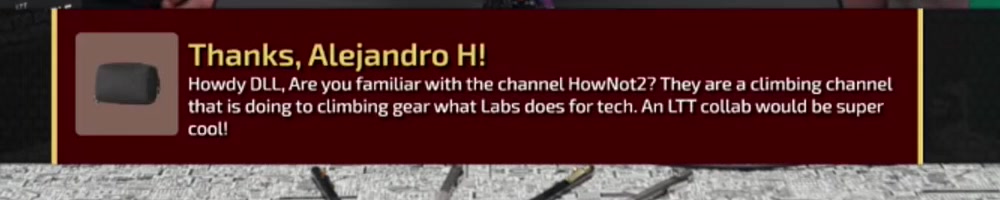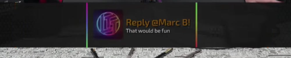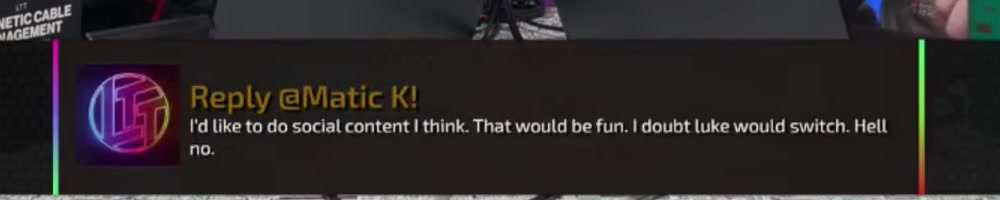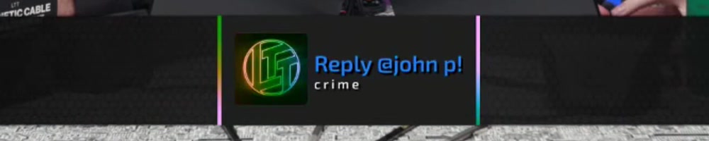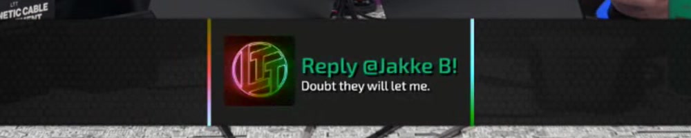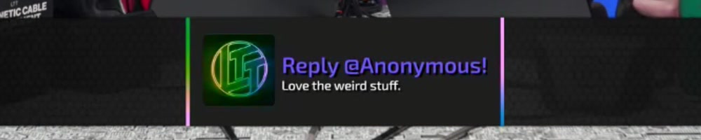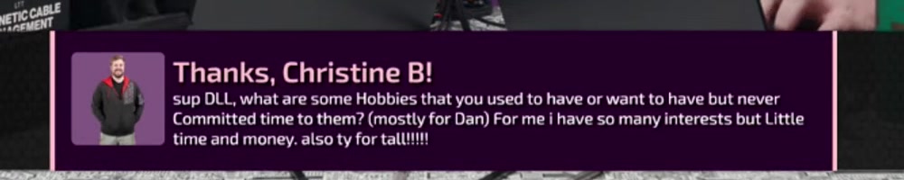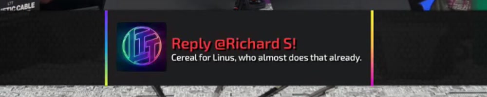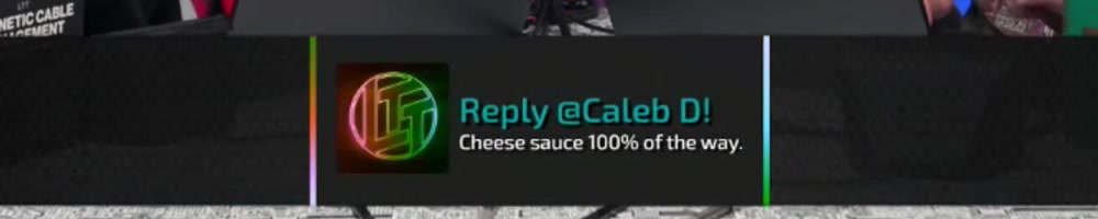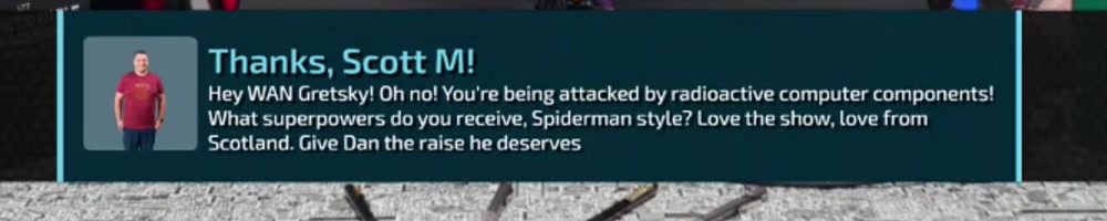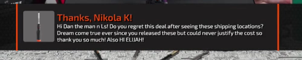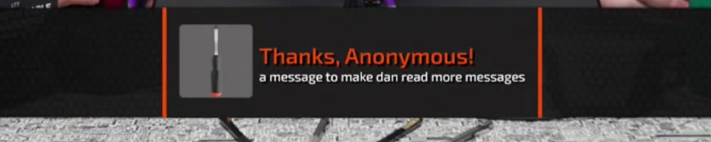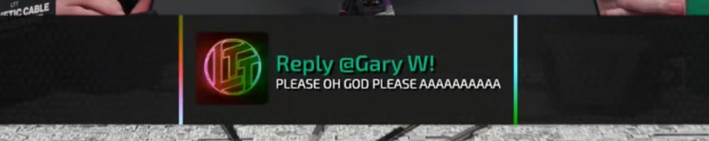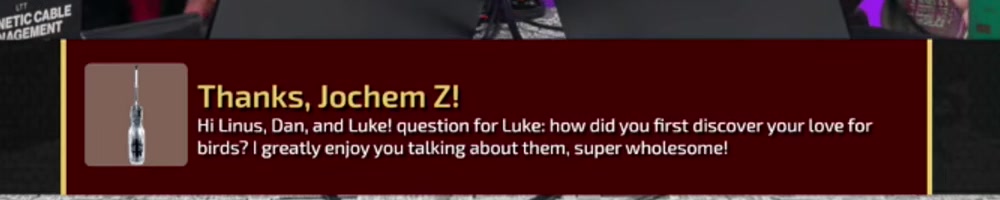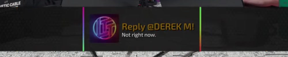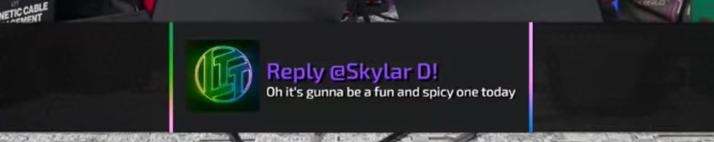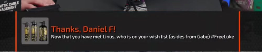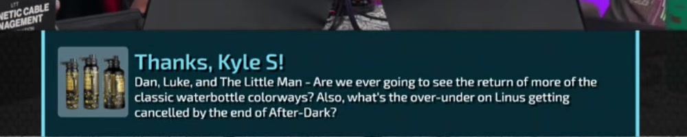 Skylar D message Thanks, Skylar D! Hey Dan if at all possible could you try to get Linus and Luke rilled up? Just want some chaos for my commute. Timestamp