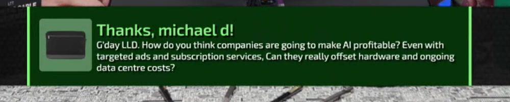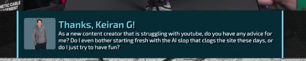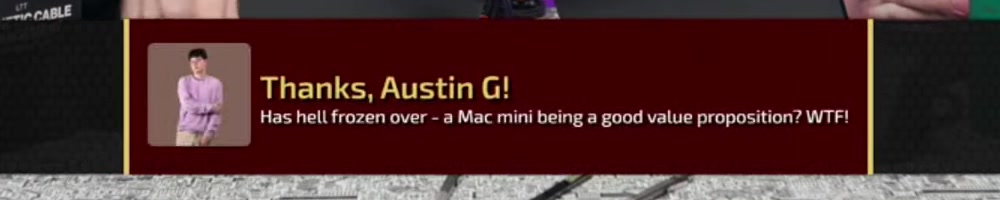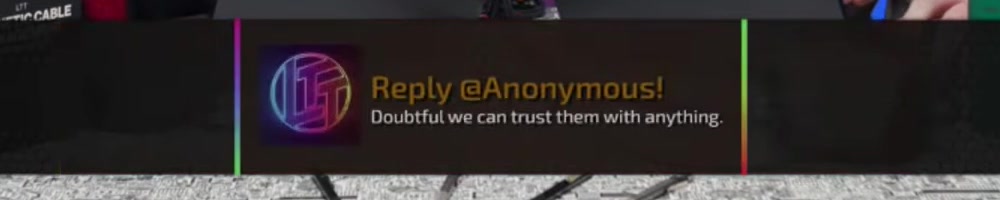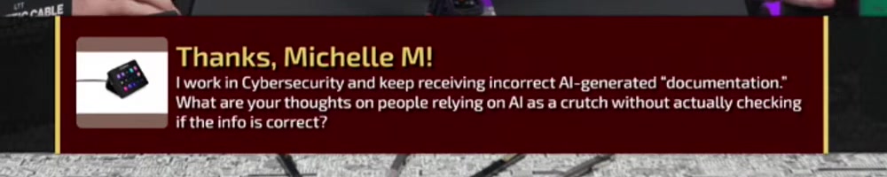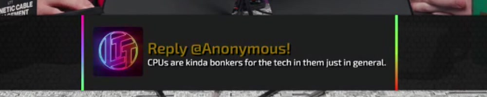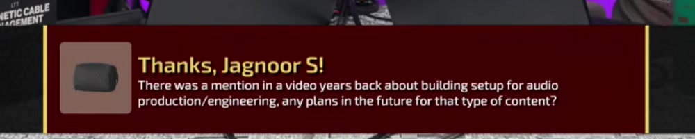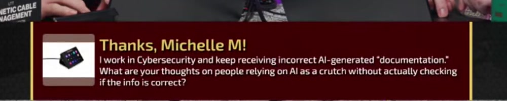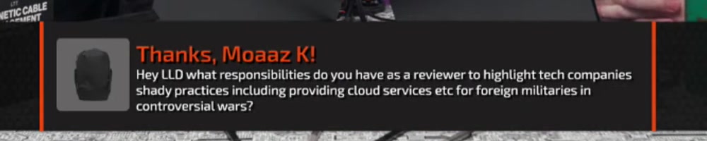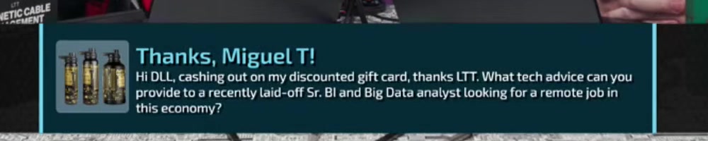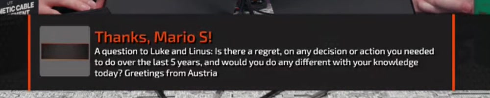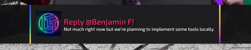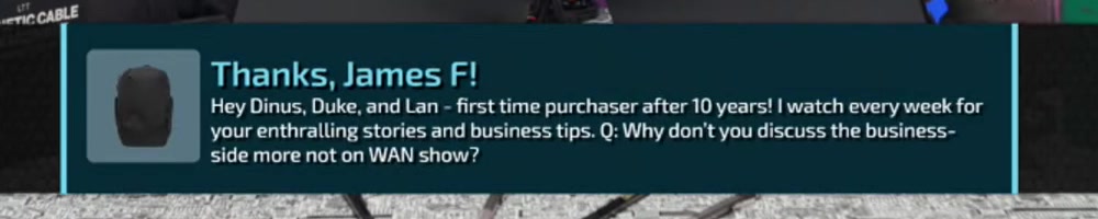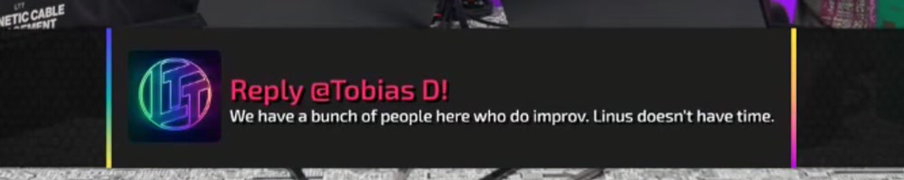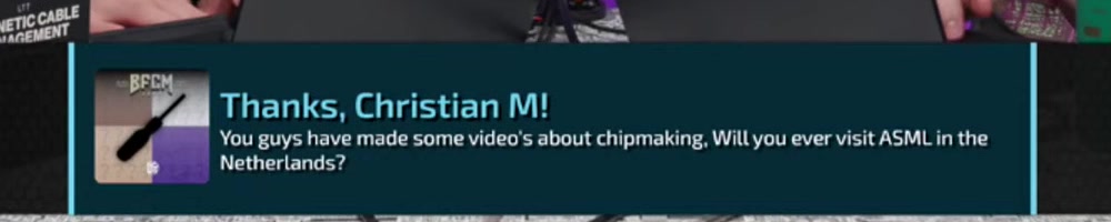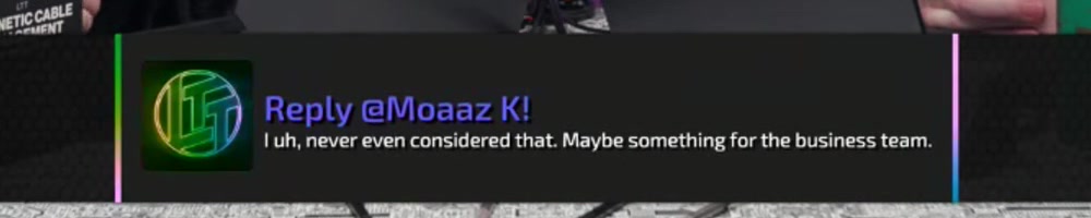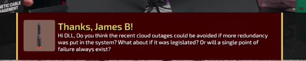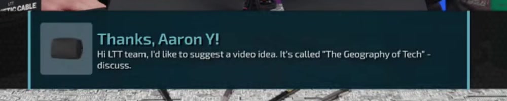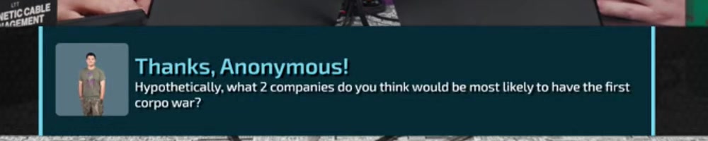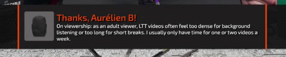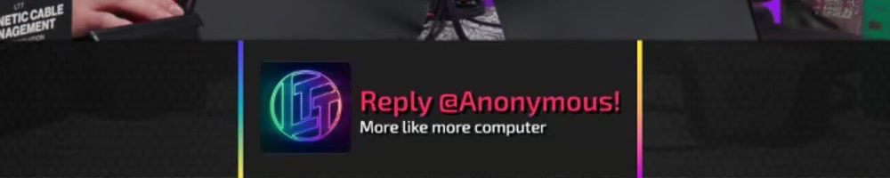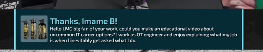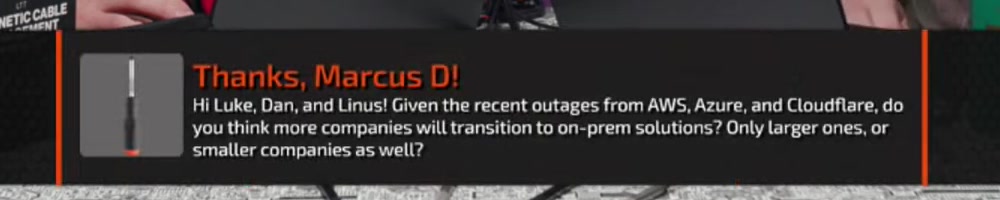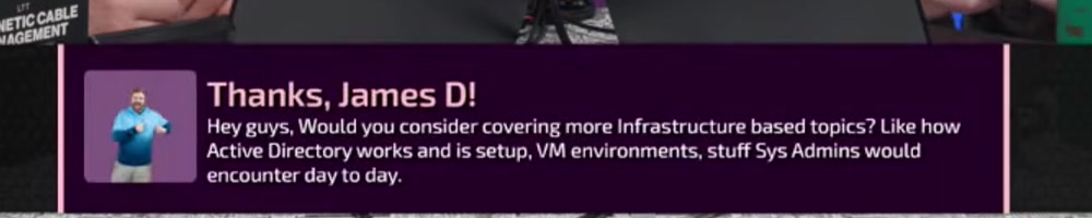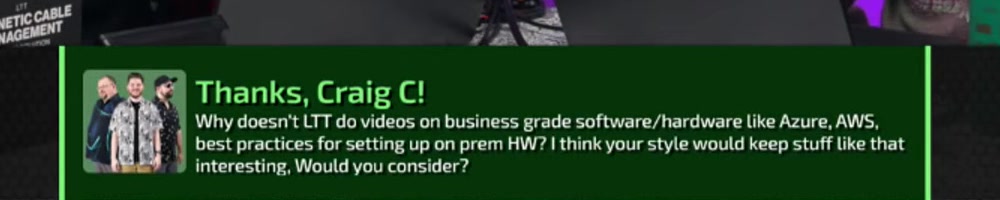 Craig C message Thanks, Craig C! Why doesn't LTT do videos on business grade software/hardware like Azure, AWS, best practices for setting up on prem HW? I think your style would keep stuff like that interesting, Would you consider? Timestamp