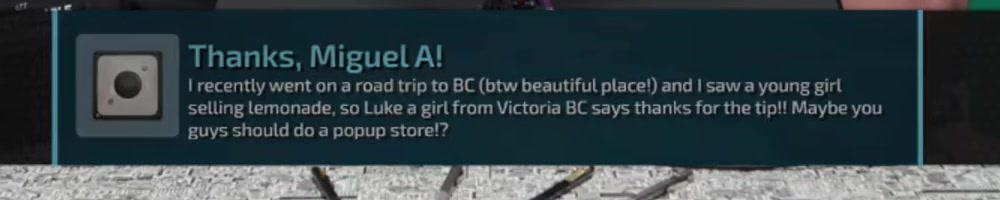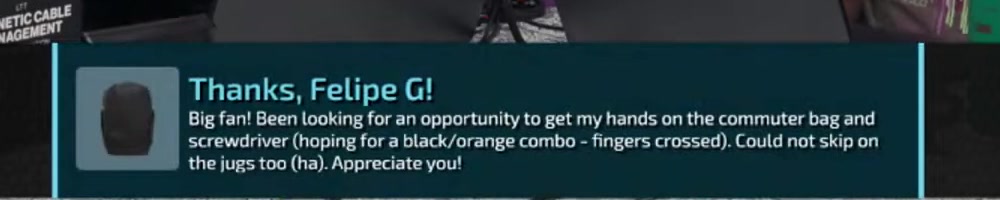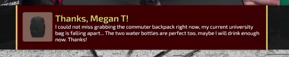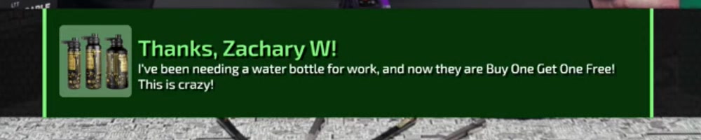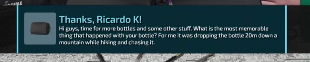 Matthew K message Thanks, Matthew K! Water Bottles for the win! Timestamp