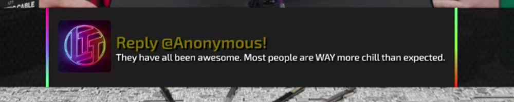 Anonymous reply Reply @Anonymous! They have all been awesome. Most people are WAY more chill than expected. Timestamp