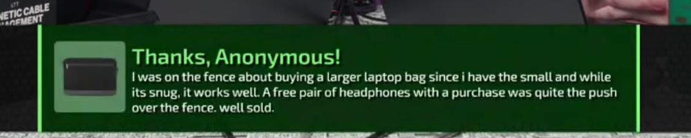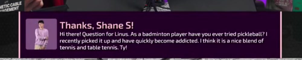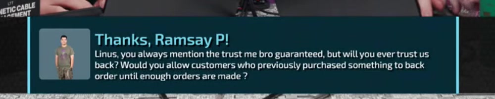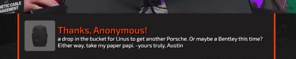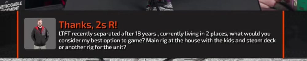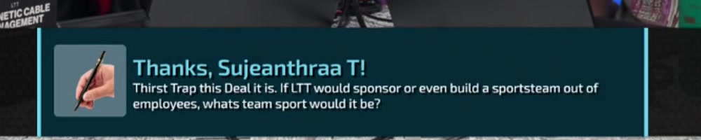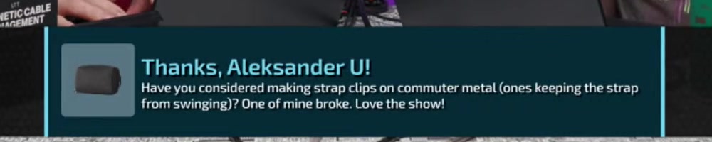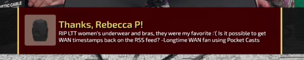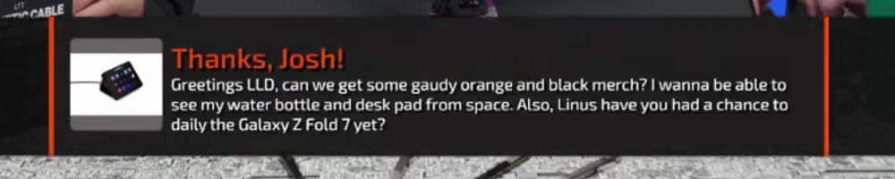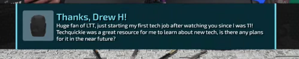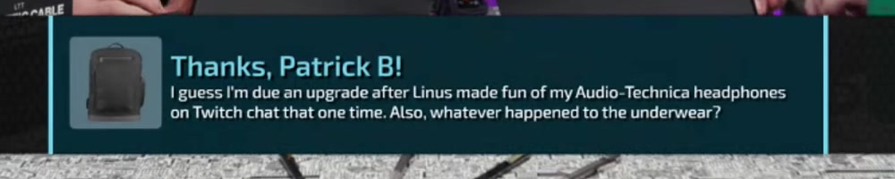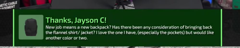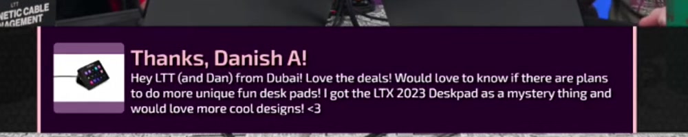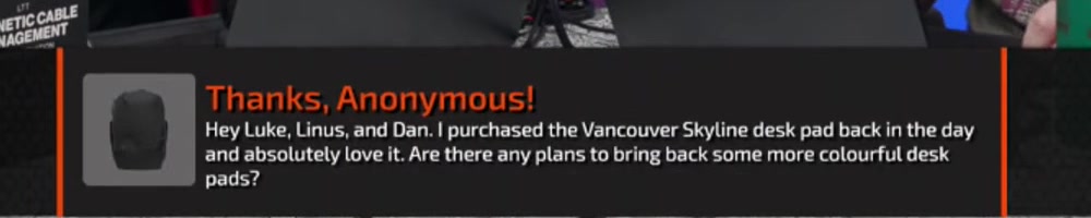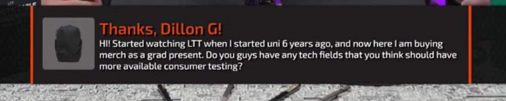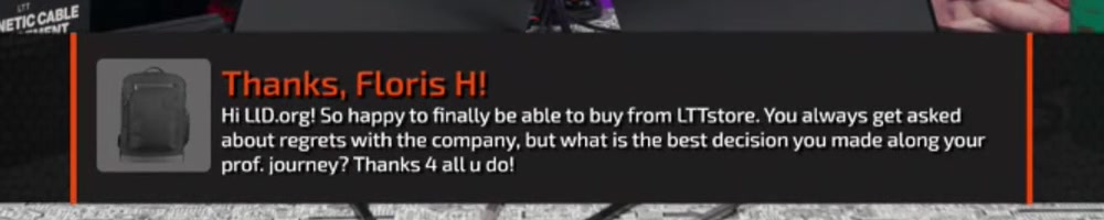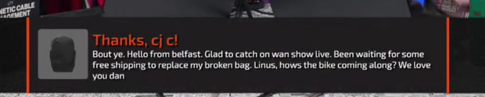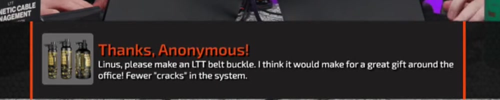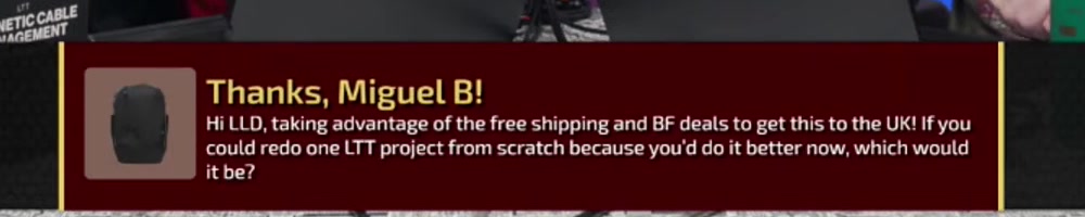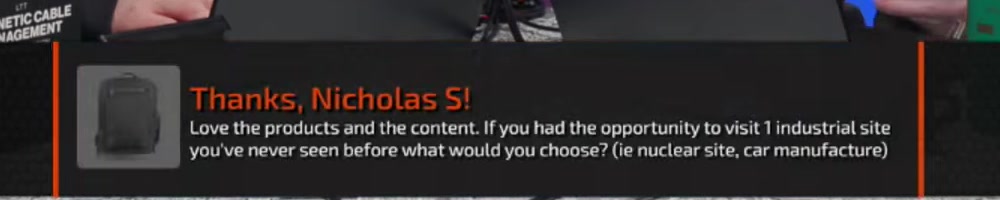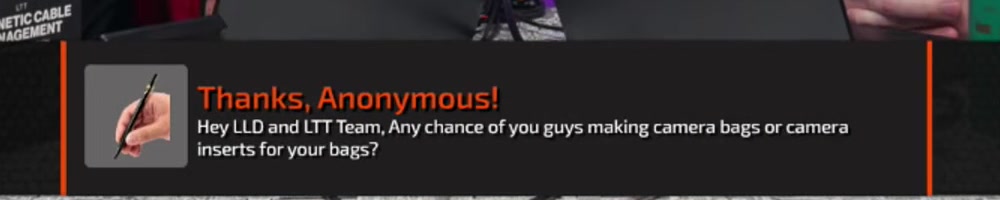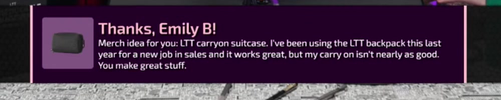 Emily B message Thanks, Emily B! Merch idea for you: LTT carryon suitcase. I've been using the LTT backpack this last year for a new job in sales and it works great, but my carry on isn't nearly as good. You make great stuff. Timestamp