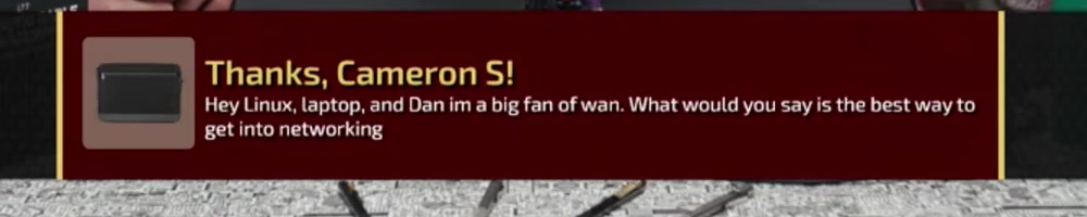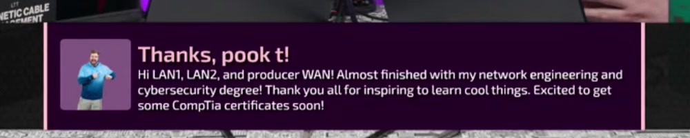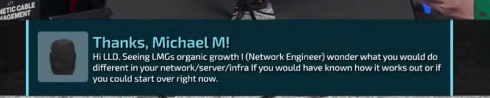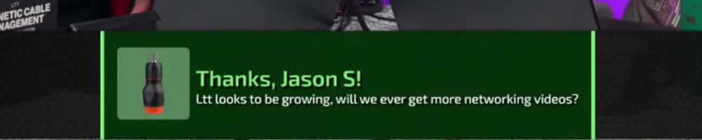 Jason S message Thanks, Jason S! Ltt looks to be growing, will we ever get more networking videos? Timestamp