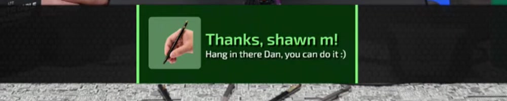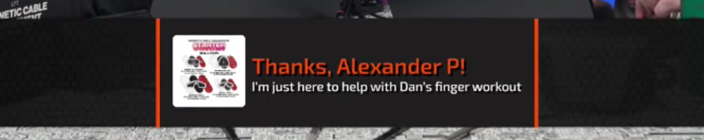Alexander P message Thanks, Alexander P! I'm just here to help with Dan's finger workout Timestamp