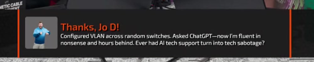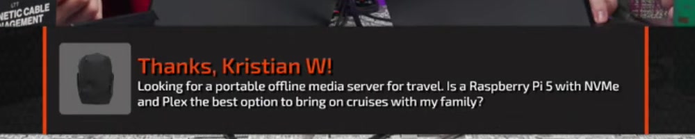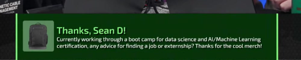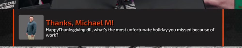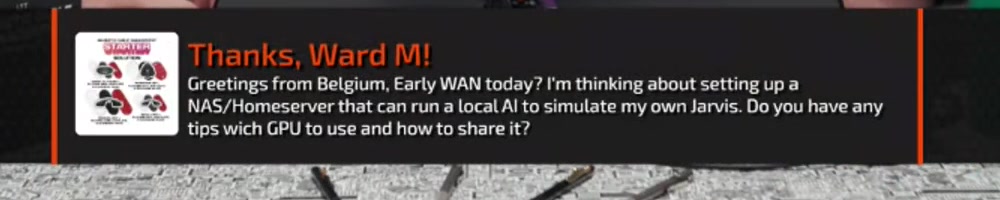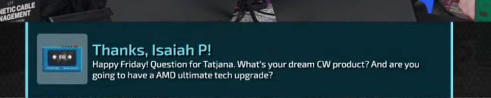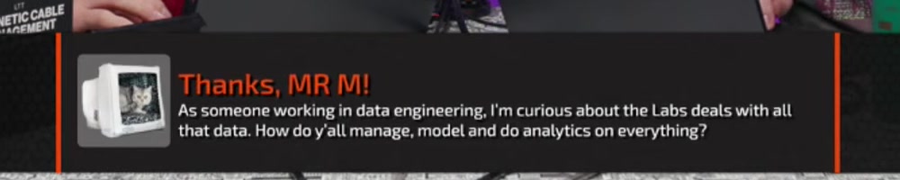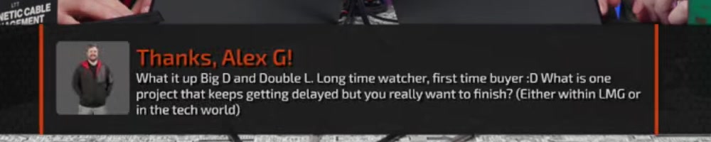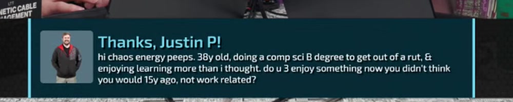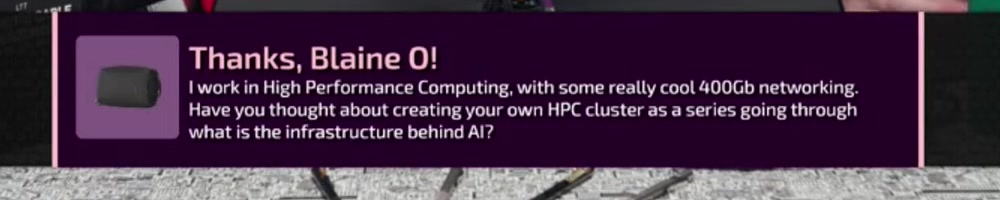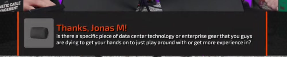 Jonas M message Thanks, Jonas M! Is there a specific piece of data center technology or enterprise gear that you guys are dying to get your hands on to just play around with or get more experience in? Timestamp