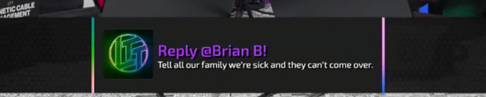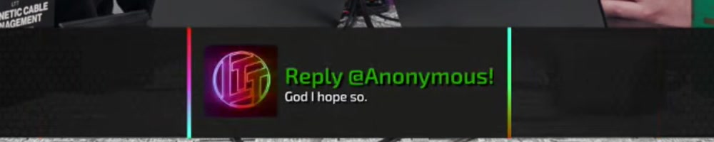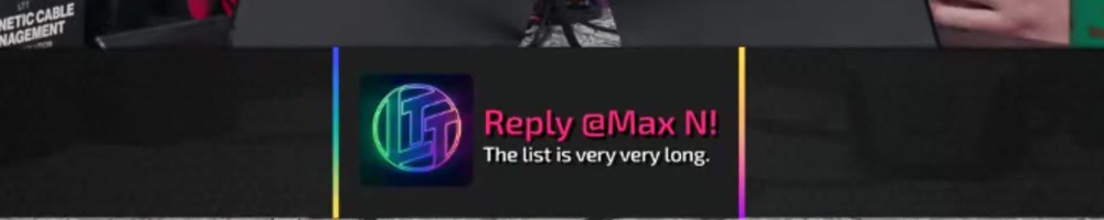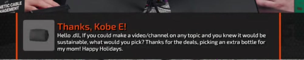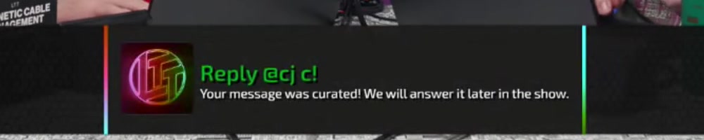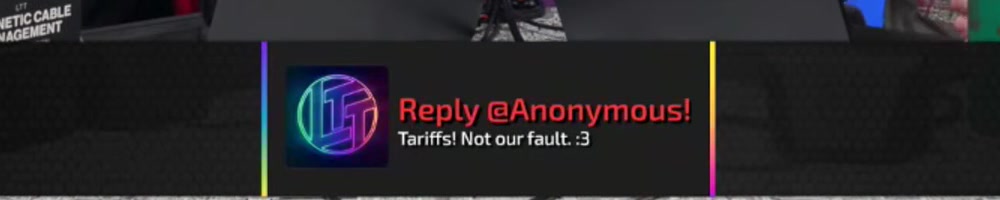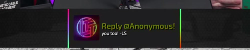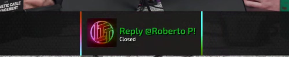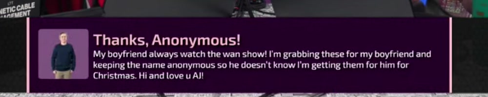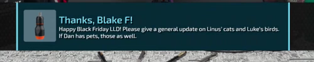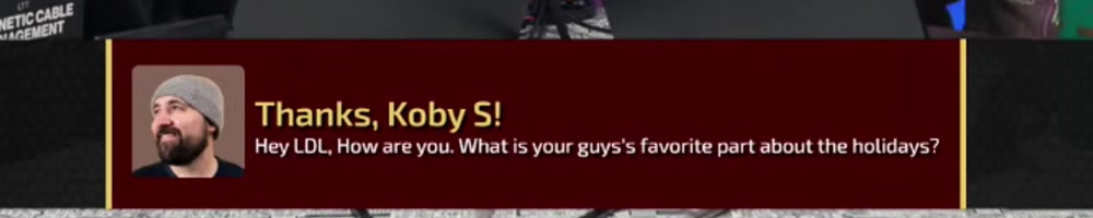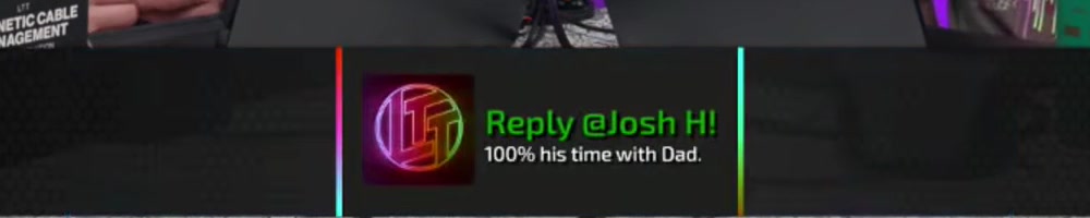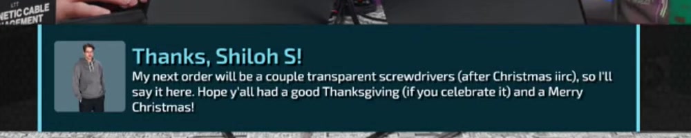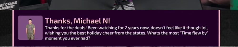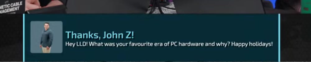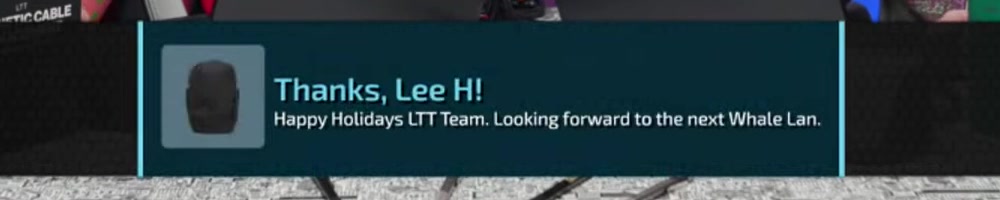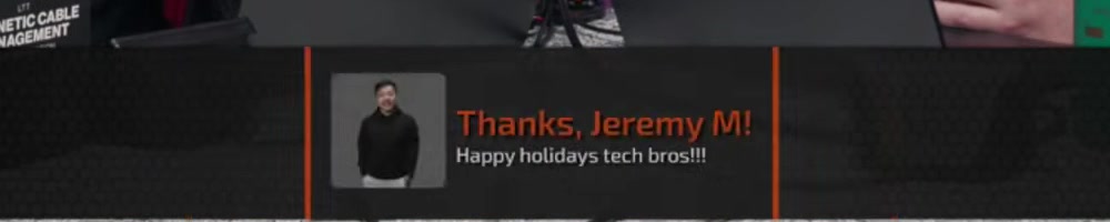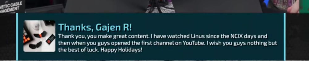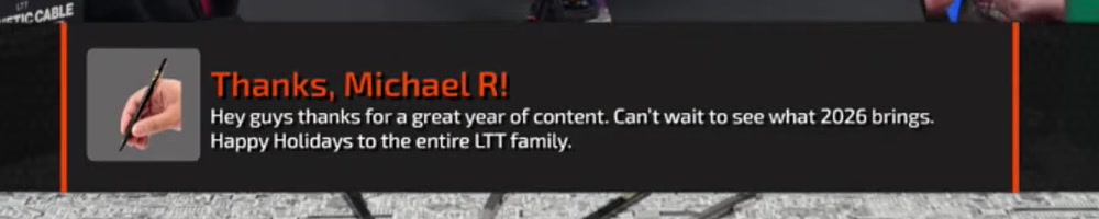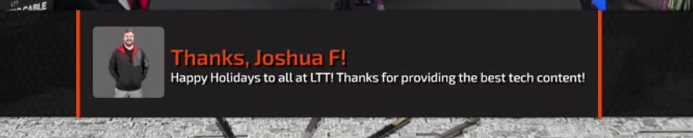 Joshua F message Thanks, Joshua F! Happy Holidays to all at LTT! Thanks for providing the best tech content! Timestamp