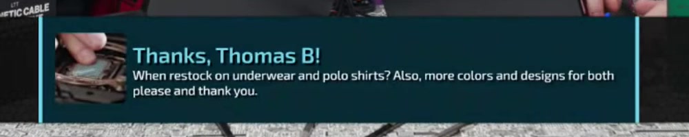 Ethan J message Thanks, Ethan J! Bring back more "greatest hits" t-shirts please! Timestamp