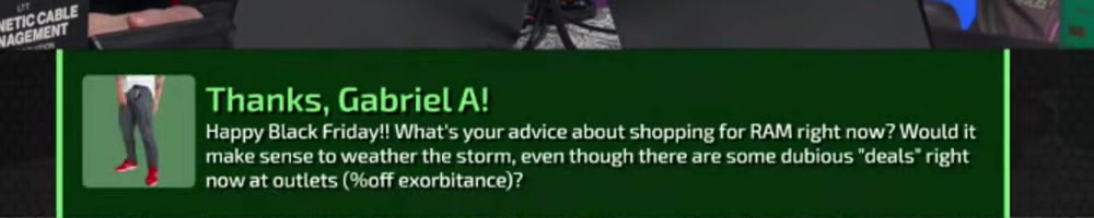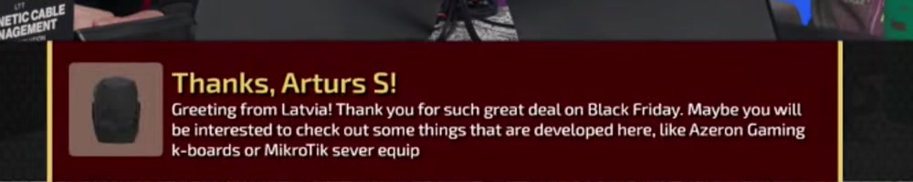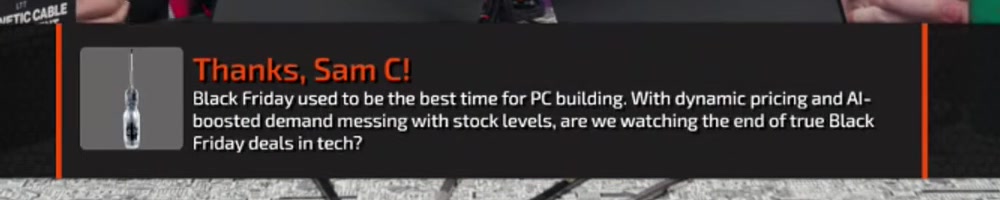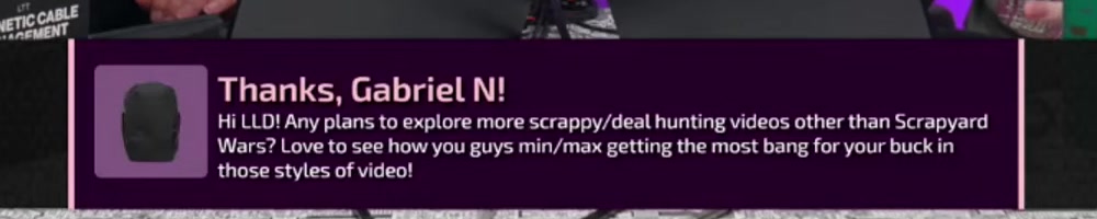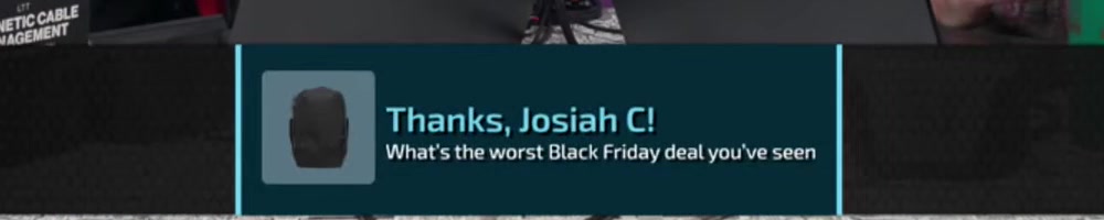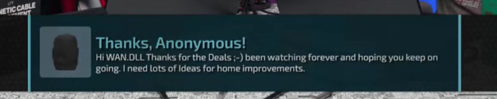Roy L message Thanks, Roy L! Hey WAN.dll, happy to be able to watch live from the UK! Q: how far have you gone hunting for a deal, BFCM or otherwise? (excluding Scrapyard Wars) Timestamp