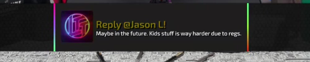 Jason L reply Reply @Jason L! Maybe in the future. Kids stuff is way harder due to regs. Timestamp