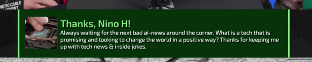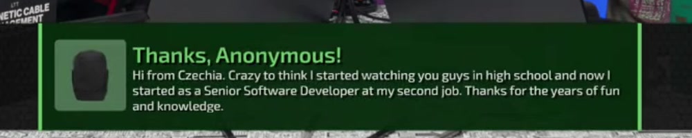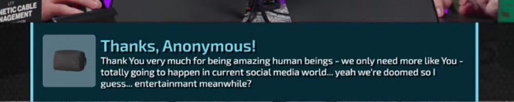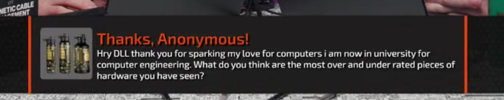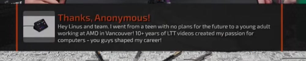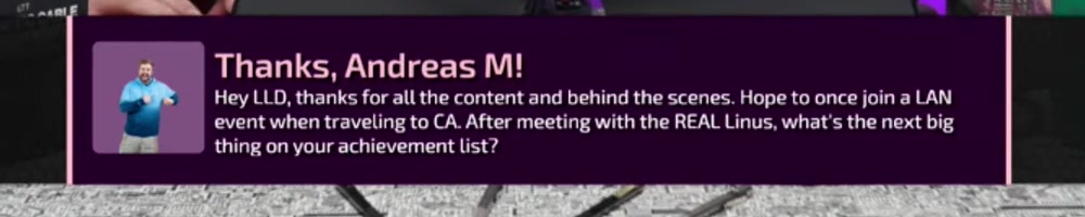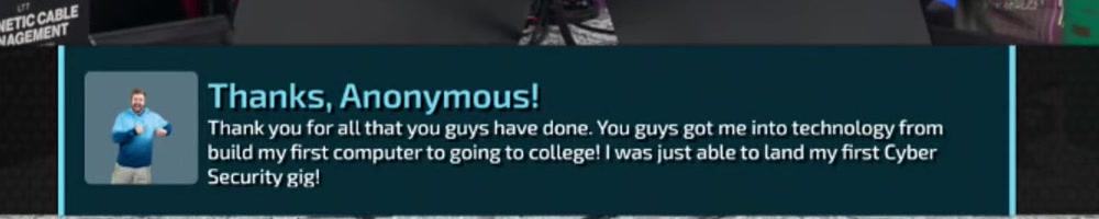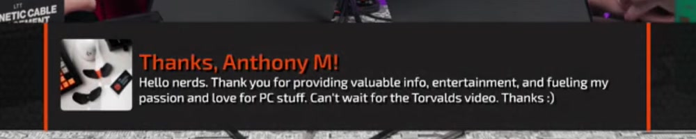 Anthony M message Thanks, Anthony M! Hello nerds. Thank you for providing valuable info, entertainment, and fueling my passion and love for PC stuff. Can't wait for the Torvalds video. Thanks :) Timestamp