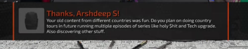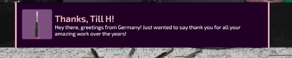Till H message Thanks, Till H! Hey there, greetings from Germany! Just wanted to say thank you for all your amazing work over the years! Timestamp