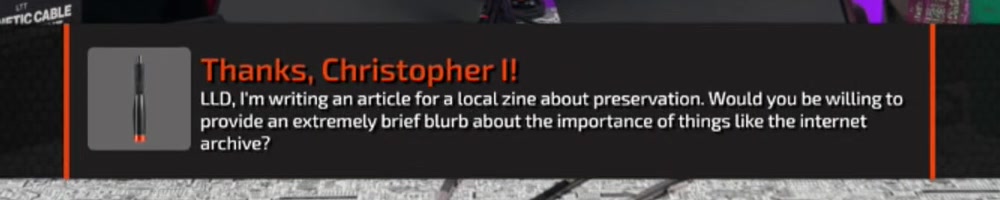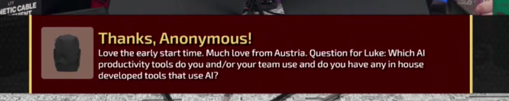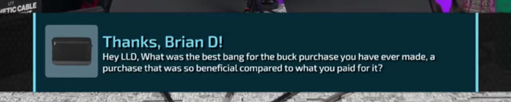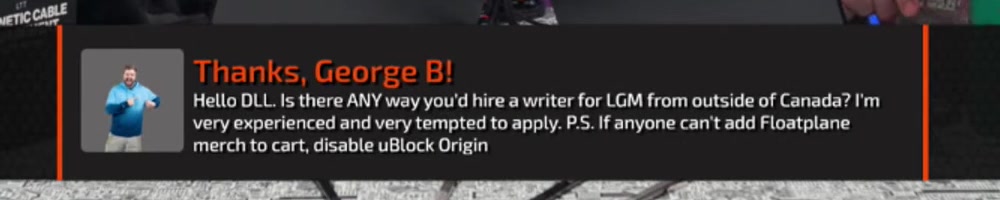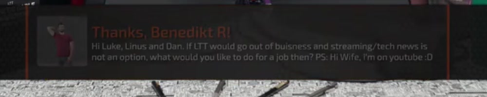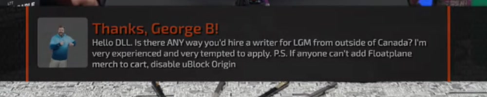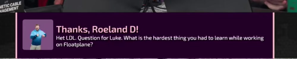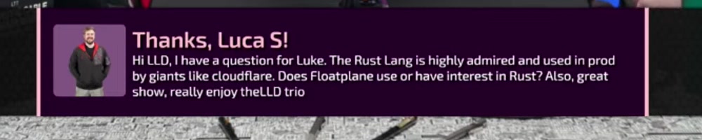 Luca S message Thanks, Luca S! Hi LLD, I have a question for Luke. The Rust Lang is highly admired and used in prod by giants like cloudflare. Does Floatplane use or have interest in Rust? Also, great show, really enjoy theLLD trio Timestamp