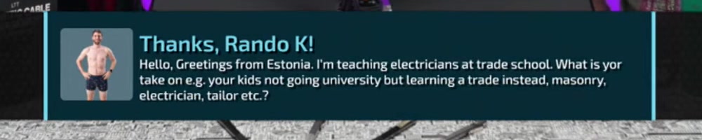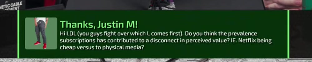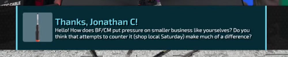Tyler F message Thanks, Tyler F! Happy holidays LLD!!! How has it been having the recent shift in income of content vs. physical products? What challenges have you faced during this shift? Is it negatively affecting your staff? Timestamp