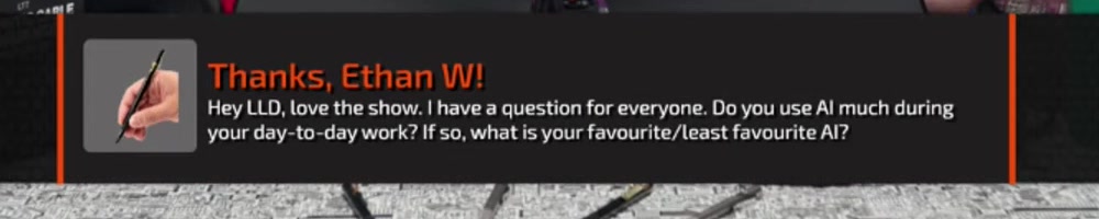 Ethan W message Thanks, Ethan W! Hey LLD, love the show. I have a question for everyone. Do you use Al much during your day-to-day work? If so, what is your favourite/least favourite Al? Timestamp