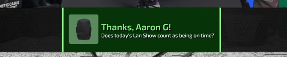 Aaron G message Thanks, Aaron G! Does today's Lan Show count as being on time? Timestamp