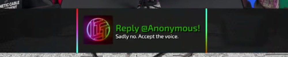 Anonymous reply Reply @Anonymous! Sadly no. Accept the voice. Timestamp