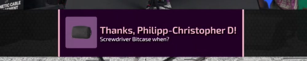 Philipp-Christopher D message Thanks, Philipp-Christopher D! Screwdriver Bitcase when? Timestamp