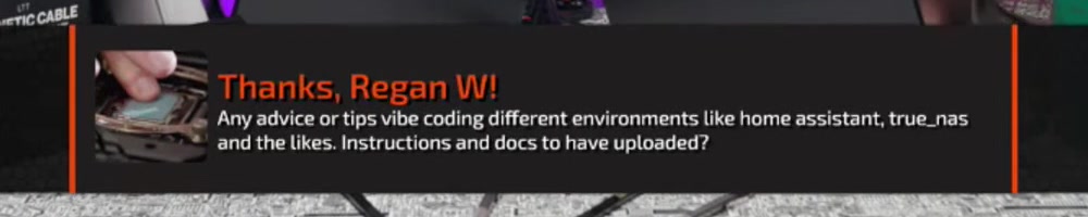Regan W message Thanks, Regan W! Any advice or tips vibe coding different environments like home assistant, true_nas and the likes. Instructions and docs to have uploaded? Timestamp