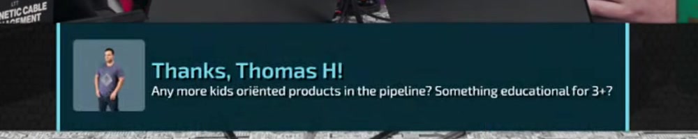 Thomas H message Thanks, Thomas H! Any more kids oriented products in the pipeline? Something educational for 3+? Timestamp
