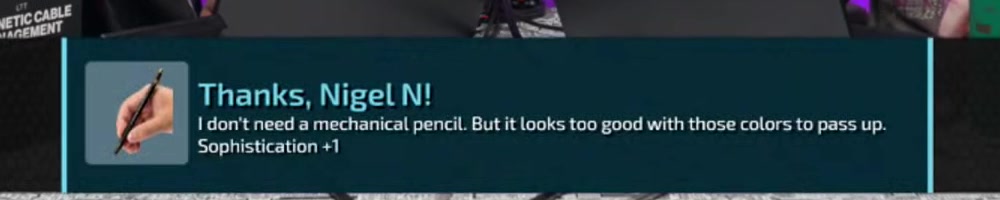 Nigel N message Thanks, Nigel N! I don't need a mechanical pencil. But it looks too good with those colors to pass up. Sophistication +1 Timestamp