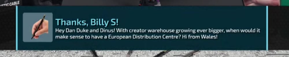 Lucas D message Thanks, Lucas D! Hello from Spain! Getting these as my self-birthday present (today's WAN is not after midnight here, also cause for celebration). Any update on a possible EU or UK distribution center? Timestamp