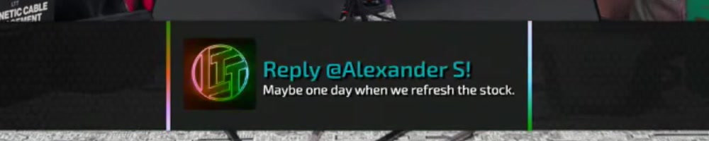 Alexander S reply Reply @Alexander S! Maybe one day when we refresh the stock. Timestamp