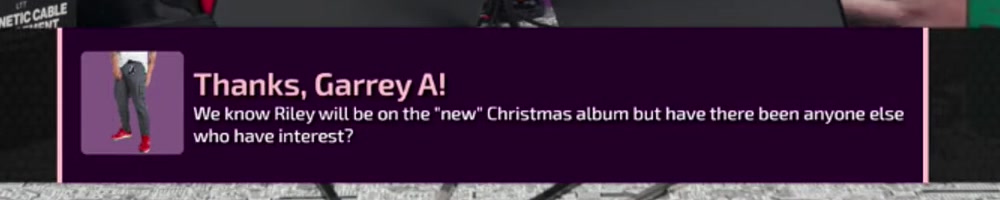 Garrey A message Thanks, Garrey A! We know Riley will be on the "new" Christmas album but have there been anyone else who have interest? Timestamp