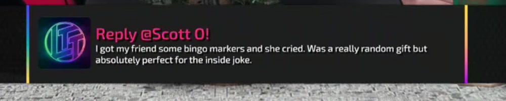 I got my friend some bingo markers and she cried. Was a really random gift but
