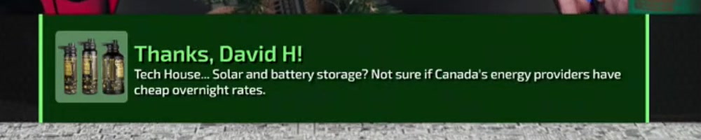 Tech House... Solar and battery storage? Not sure if Canada's energy providers have