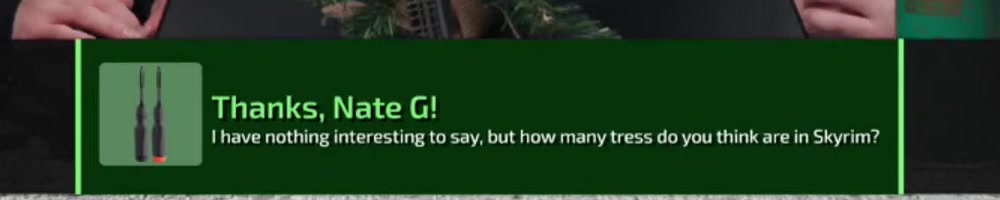 I have nothing interesting to say, but how many tress do you think are in Skyrim? | Timestamp |  |