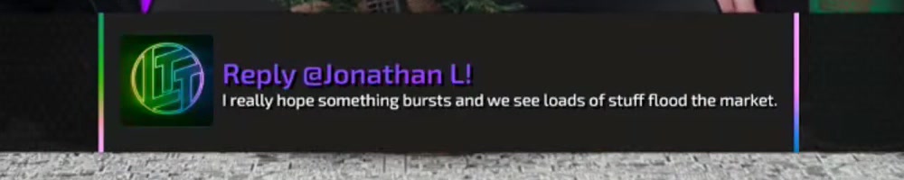 I really hope something bursts and we see loads of stuff flood the market. | Timestamp |  |