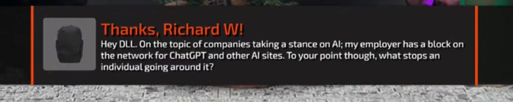 Hey DLL. On the topic of companies taking a stance on Al; my employer has a block on