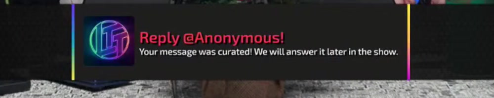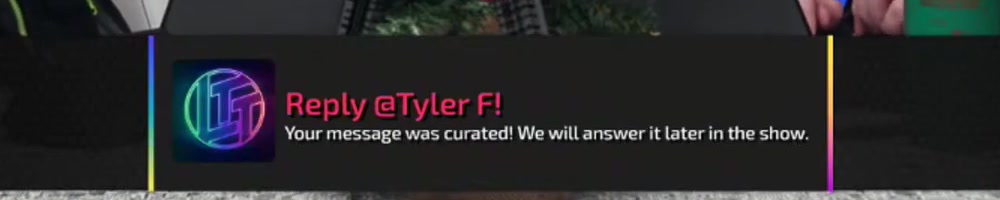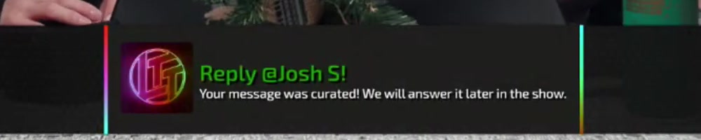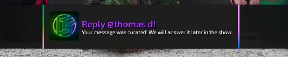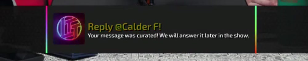 Your message was curated! We will answer it later in the show. | Timestamp |  |