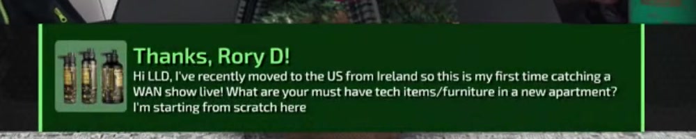 WAN show live! What are your must have tech items/furniture in a new apartment?