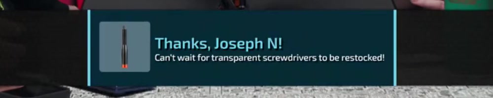 Can't wait for transparent screwdrivers to be restocked! | Timestamp |  |
